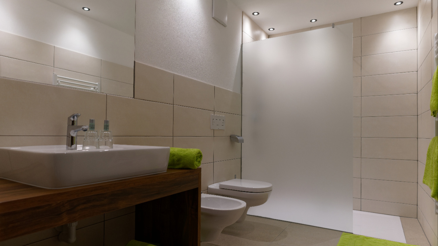 Bad mit WC, Bidet, Dusche, Wandheizkörper & Föhn